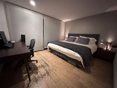 Moderno departamento en edificio AAA ubicado a una cuadra de Reforma y dos cuadras de la colonia Roma. 1 recámara con baño y vestidor., 1 estacionamiento techado. Gym , seguridad 24 hrs.